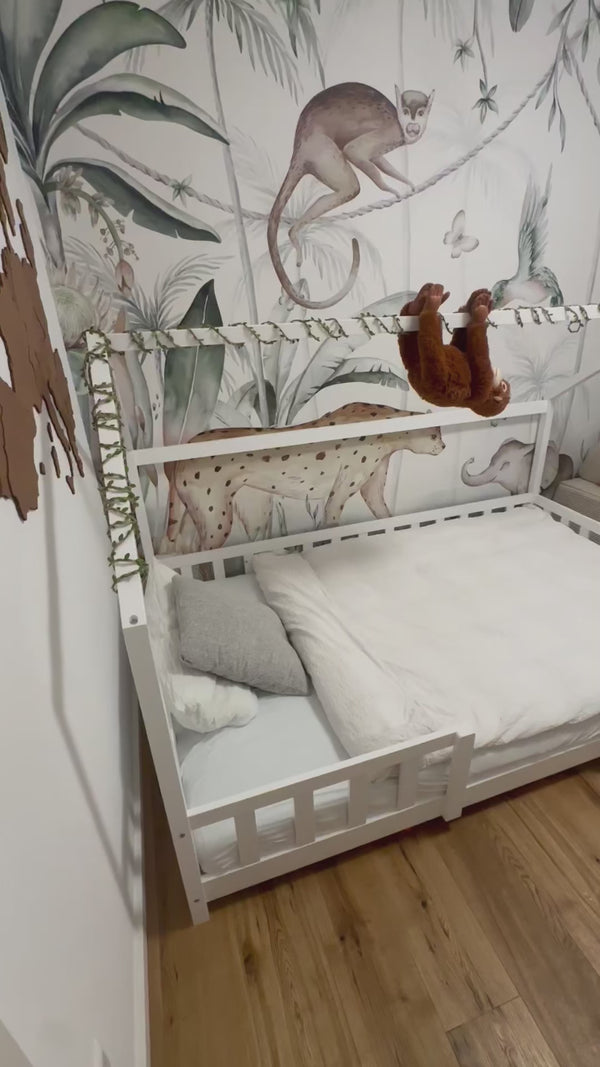 Das Kinderbett aus natürlichem Holz verwandelt jedes Kinderzimmer in ein zauberhaftes Schlummerparadies. Mit seiner Hausoptik schafft es eine gemütliche Atmosphäre und lädt kleine Abenteurer zum Träumen und Entdecken ein.
