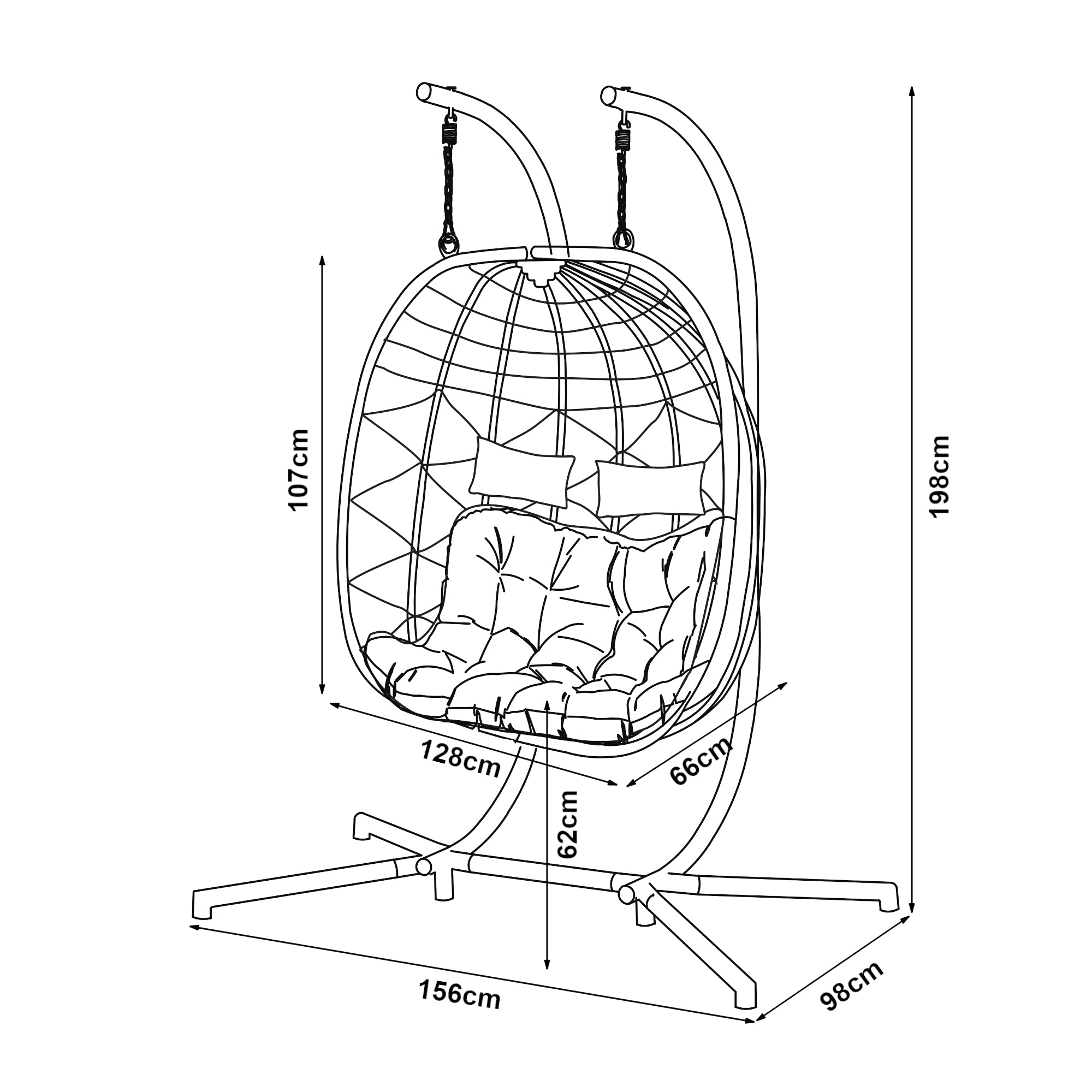 Ce fauteuil suspendu élégant est l’endroit idéal pour se détendre à deux. Son design accueillant crée une atmosphère chaleureuse et invite à la relaxation.