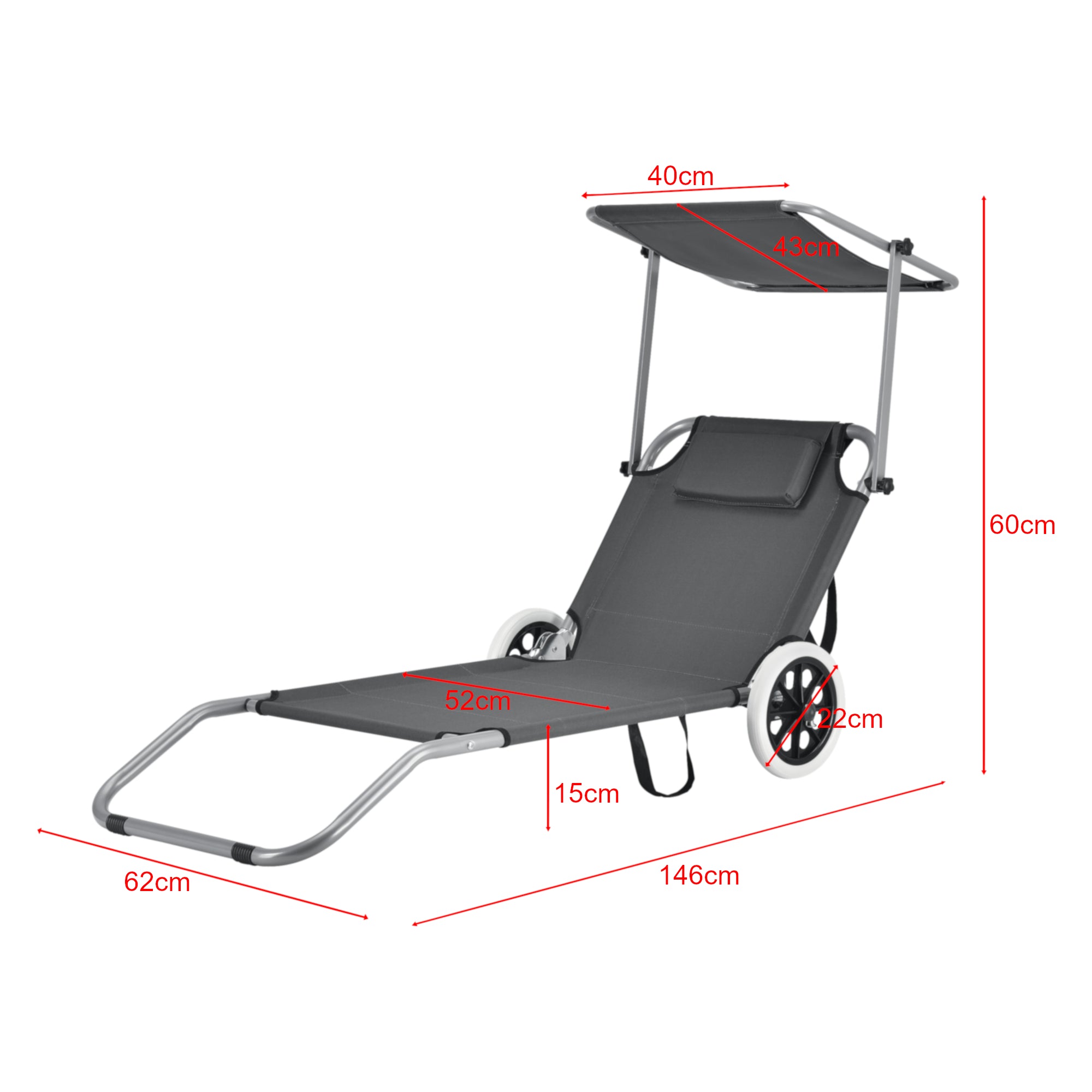 - hauteur de la chaise longue : 15 cm