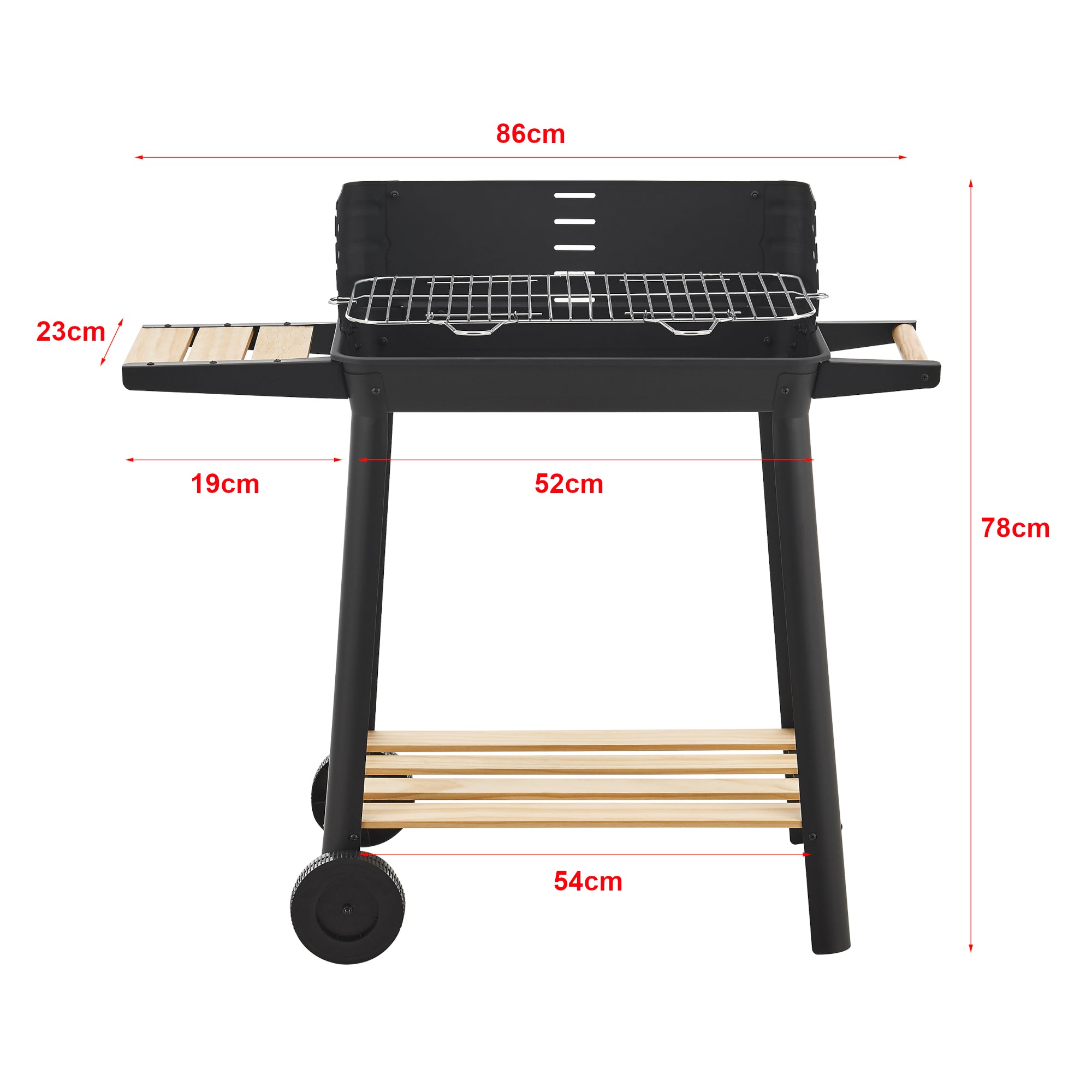 Notre chariot barbecue au charbon de bois, robuste et facile à monter, est parfait pour les amateurs de grillades. Doté d'un design classique et de fonctionnalités pratiques, il comprend une surface de cuisson spacieuse et des étagères intégrées pour les accessoires de barbecue. Grâce à ses grandes roues stables, il se déplace facilement, idéal les réunions de famille en plein air. La grille de cuisson en acier inoxydable émaillé garantit des résultats savoureux, tandis qu'une étagère latérale offre un espace pratique pour les outils de barbecue. Avec son pare-vent intégré, il assure une cuisson optimale, que vous préfériez une saisie rapide ou une cuisson plus lente et douce.