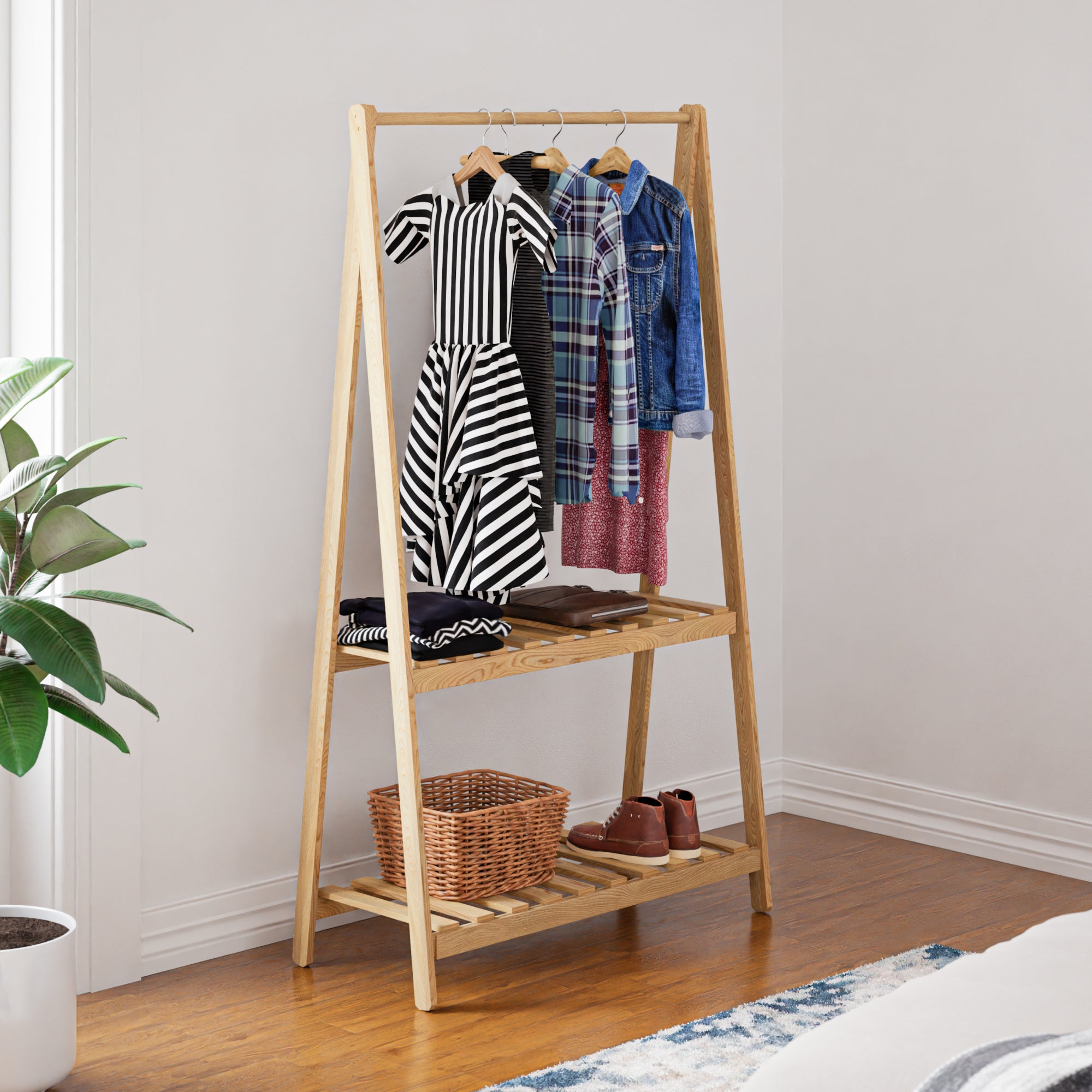 Der praktische und stabile Kleiderständer aus natürlichem Kiefernholz, lässt sich schnell und einfach aufbauen. Er verfügt über eine Garderobenstange und ermöglicht Ihnen Ihre Lieblingsstücke immer griffbereit zu haben. Die zwei Ablagen bieten einen idealen Platz für bspw. Schuhe oder Taschen.