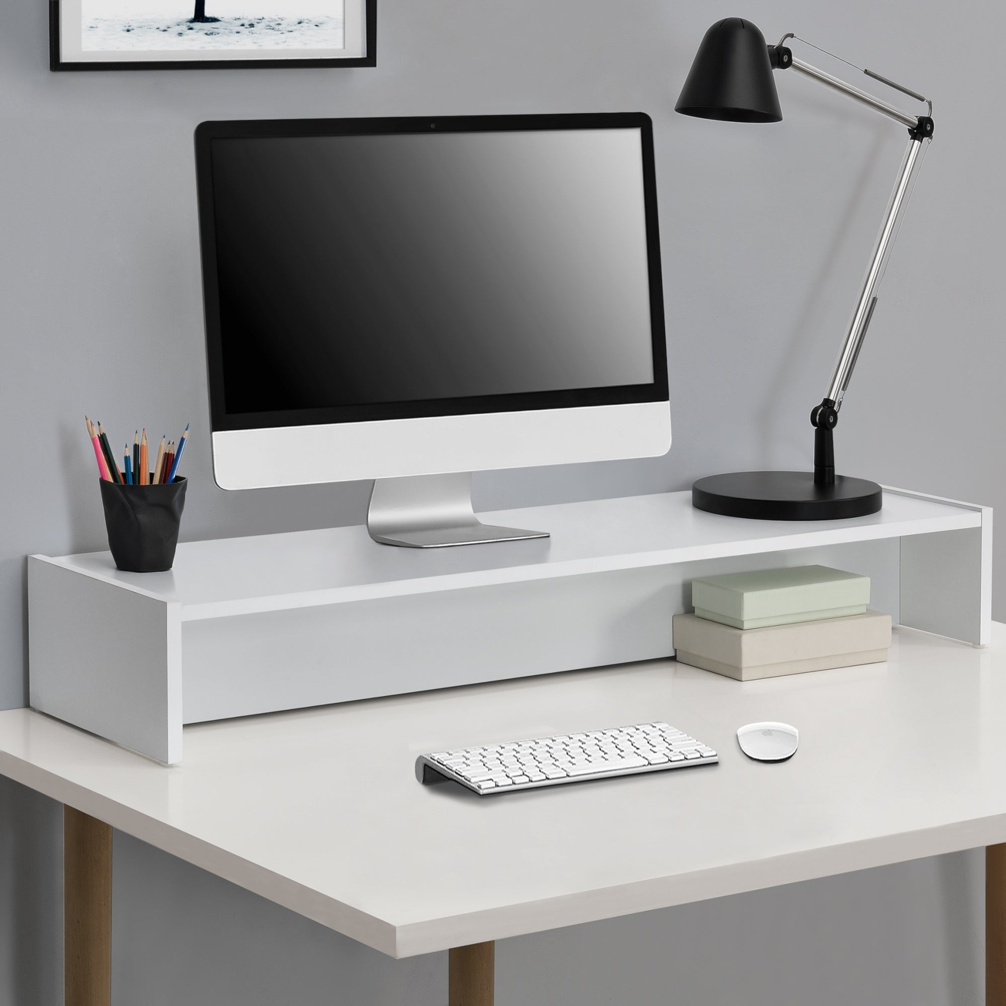 - Mehr Platz auf dem Schreibtisch durch neu geschaffene Ablagefläche